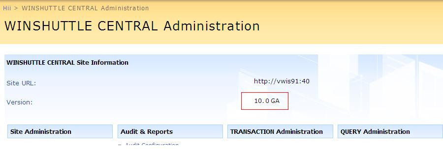 - From the CENTRAL Administration site, ensure that the current version is 10.0 as shown in the following image: