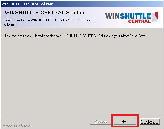 - When prompted, click Next on the CENTRAL Setup Wizard.