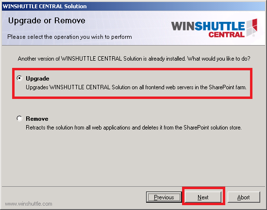 - Ensure that Upgrade is selected. Click Next.