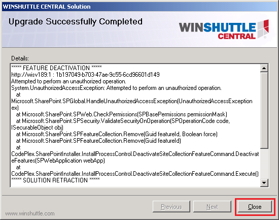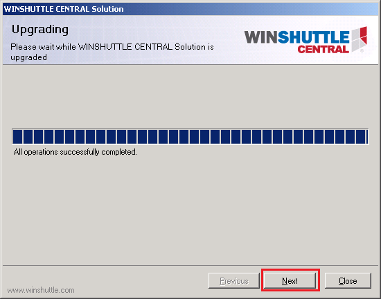 - The screen confirms that the upgrade was successful. Click Close.