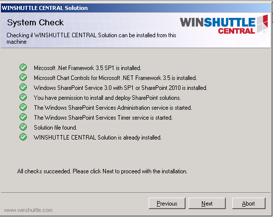 - Ensure that the System Check page displays Green check mark next to each step, and then click Next.