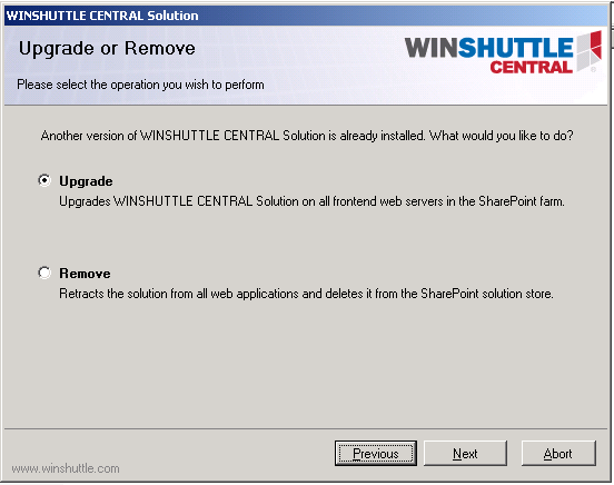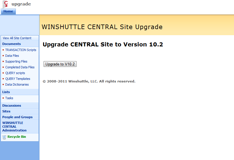 - From the CENTRAL Administration site, ensure that the current version is 10.2. The Upgrade to V. 10.2 button should be available. Click Upgrade to V. 10.2.
