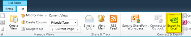 - Under List Tools, click List, and then click Export to Excel.