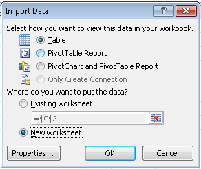 - Select where you want to put the data (New worksheet in this case).