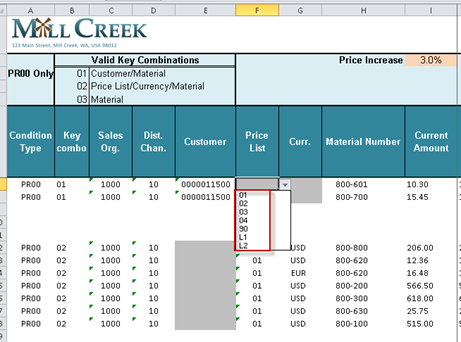 - In your Excel file, verify the dropdown options are present in the specified cells.