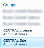 - In the Groups column, click CENTRAL License Administrators or CENTRAL Site Administrators.