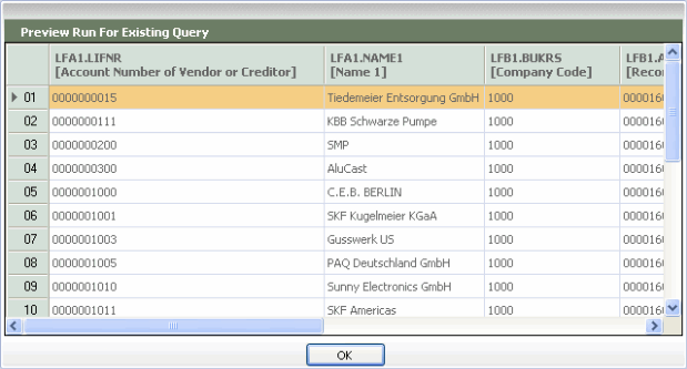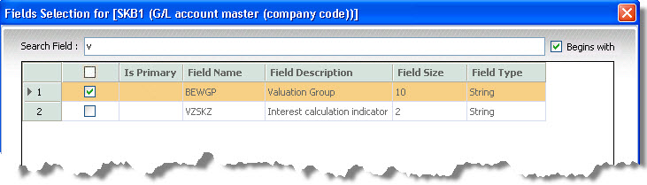 For SAP queries, you cannot select or deselect any output or criteria fields.