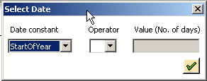 With the Select Constant/Variables option, perform date math, such as Today-120. You can also select the date from the calendar displayed or chose an SAP initialized date. Date values for criteria must always be specified in the correct date format as selected in Tools > Options > SAP Defaults.