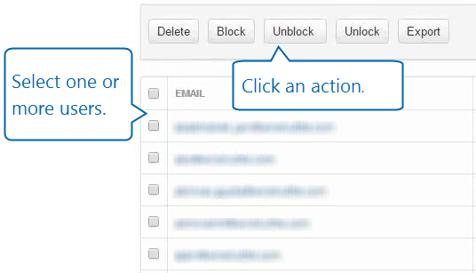 Administrative actions (Delete, Block, Unblock, Unlock)